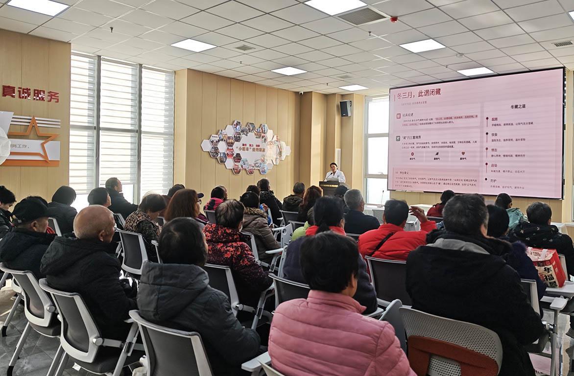 此次讲座邀请电子城社区卫生服务中心的张云晶医生主讲。她紧扣冬季“阳气内敛、阴气盛极”的中医养生特点,以接地气的通俗表达拆解养生秘诀,围绕养生食材与健康生活方式两大核心板块展开细致讲解。针对老年人肠胃功能较弱的生理特性,张医生建议饮食以温性、易消化食材为主,可适当食用枸杞、桂圆、山药等药食同源食材调理身体,同时提醒大家少食生冷油腻食物,注重三餐合理搭配;每日饮水需保持1500-1700毫升,采用分多次小口慢饮的方式,避免肠胃负担。为方便居民实操,她还分享了简单易做的养生食谱,让健康饮食轻松融入日常生活。