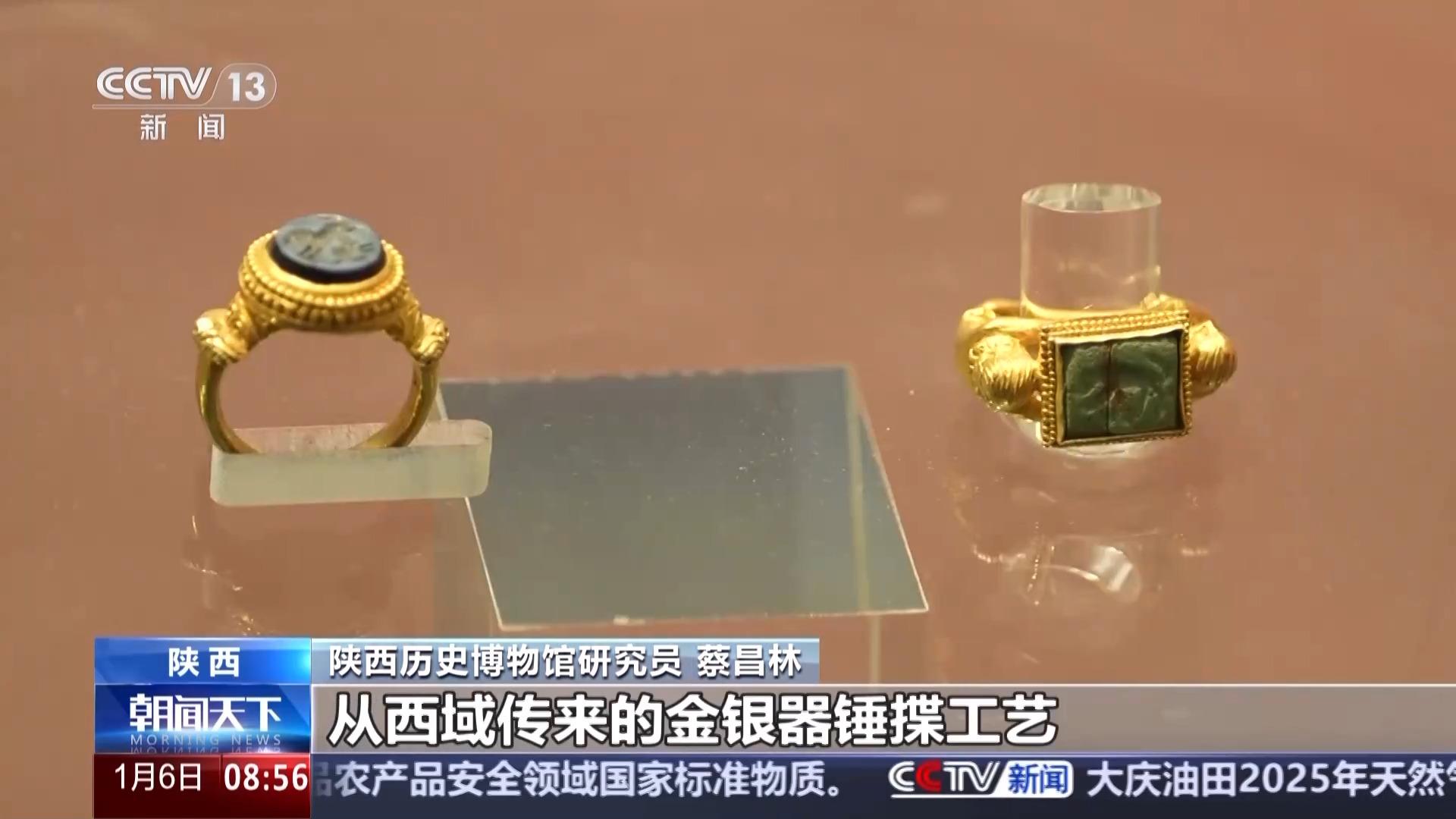 陕西历史博物馆研究员 蔡昌林:经济的发展,带来了手工艺技术的升级,比如瓷器和丝绸的规模化生产。从西域传来的金银器锤揲工艺、玻璃制造工艺,也为后来的发展奠定了基础。