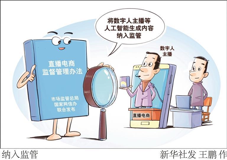 市场监管总局网监司司长朱剑桥介绍,《直播电商监督管理办法》针对直播电商行业特点,强化监管手段,将流量管控纳入监管工具箱;将数字人主播等人工智能生成内容纳入监管,避免新技术成为生成或传播虚假信息的“挡箭牌”,促进人工智能技术在直播电商领域的规范应用。
