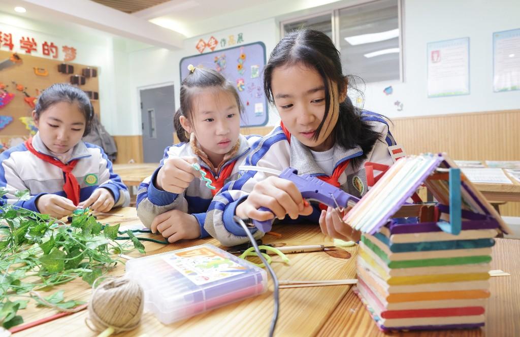 低年级学生观察校园、记录“观鸟日记”;中年级开展“我给小鸟安个家”手工活动,将童趣小鸟屋悬挂于树梢;高年级学生围绕鸟类与生态绘制思维导图,将感性认知上升为理性思考。“孩子们通过这些活动,成为了自然的观察者、生态的关怀者和未来的担当者。”仝桐说。