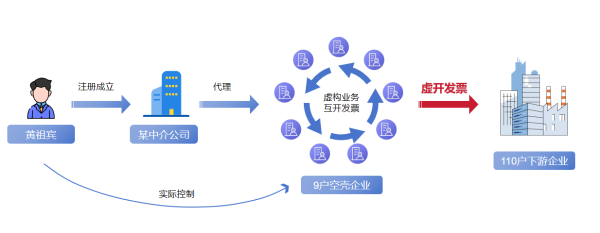 在完整、清晰的证据链条面前,黄祖宾对其主导的虚开违法事实供认不讳。他承认,这10户企业都是其利用妻子、儿子及本人身份信息注册成立并实际控制,通过个人银行账户、在线转账及现金交易等方式为110户下游企业虚开增值税发票,违法收取“开票费”。为掩盖违法行为、规避集中开票风险,他还操控这10户企业相互开具发票,维持财务上有进项发票、有销项发票的表面“正常”。