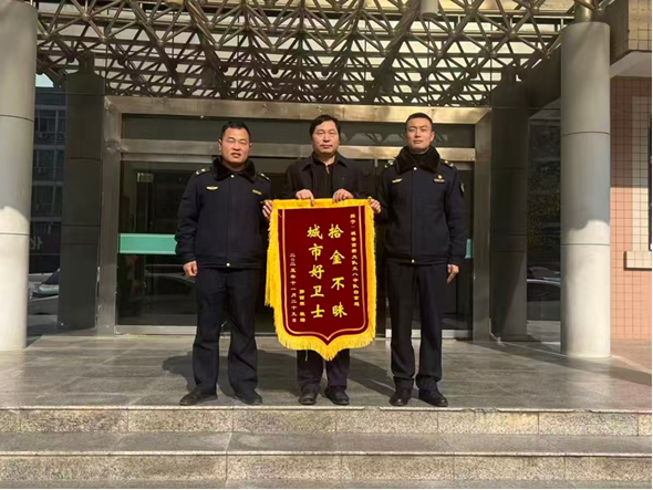在高新区,城管执法人员在巡查时发现一辆共享单车车筐内遗落着一个装有身份证、银行卡、现金等重要物品的挎包。他们在原地等候未果后,将挎包带回中队妥善保管,并积极协助派出所民警寻找失主。最终,挎包完好归还市民郭先生。郭先生专程送上锦旗,为执法人员拾金不昧、热心为民的品德点赞。