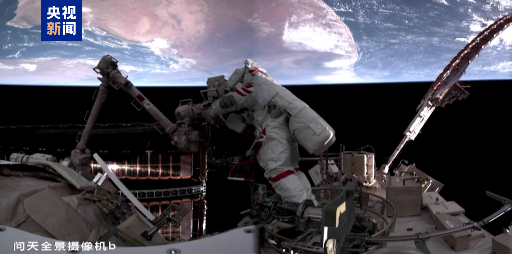 △神二十一乘组第一次出舱画面