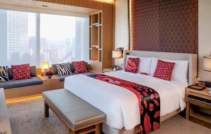 此次合作是DVF首次将时尚元素全面植入酒店场景,标志着奢侈品行业从产品竞争转向体验经济的重要尝试。套房设计通过红唇图案、锁链纹样与马年艺术图腾“Flying Horse骐骥云驰”的碰撞,构建出力量与柔美交织的视觉语言。西安古城墙的肌理与现代装饰艺术在空间内交融,为宾客打造“住进时尚杂志”的沉浸式体验。