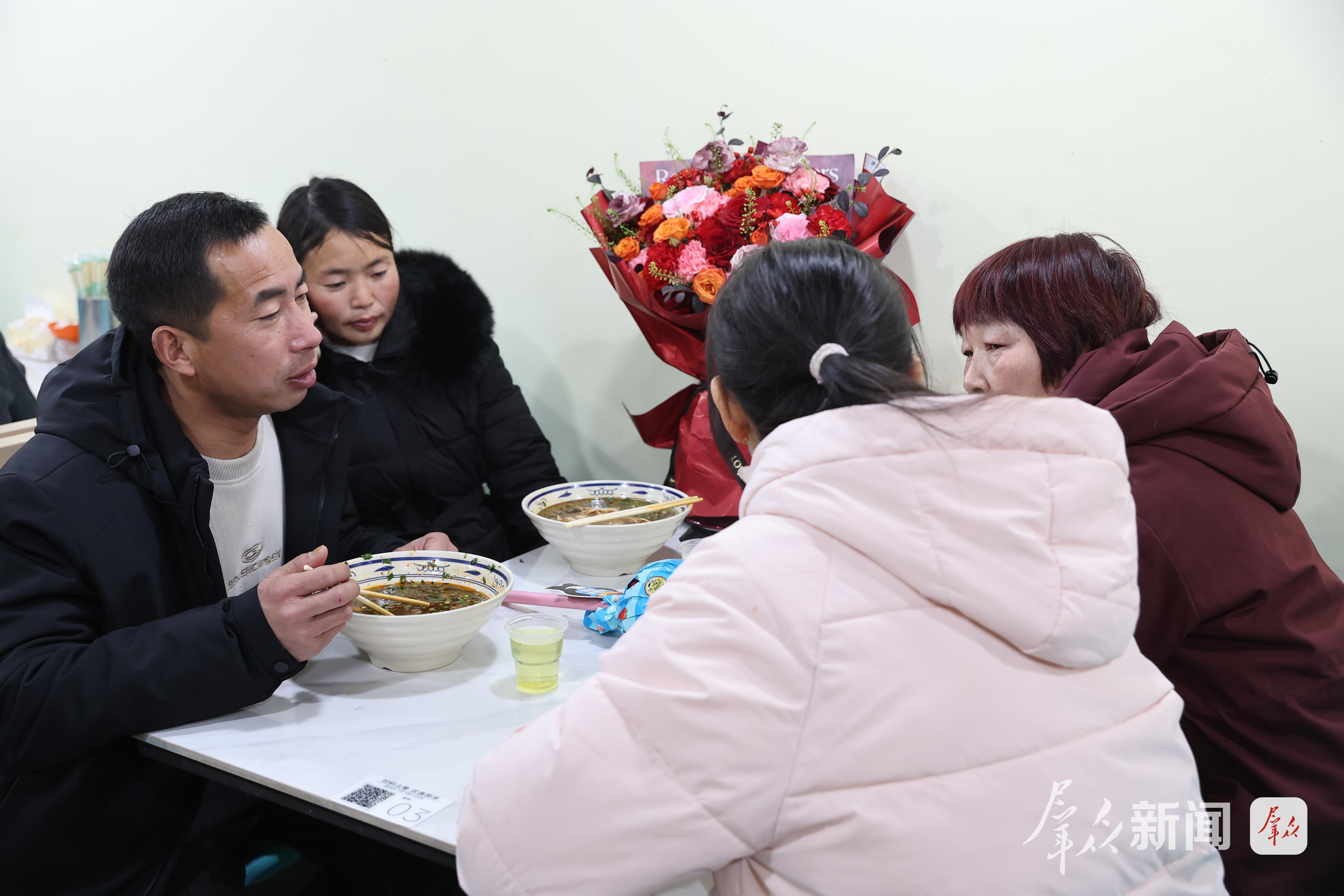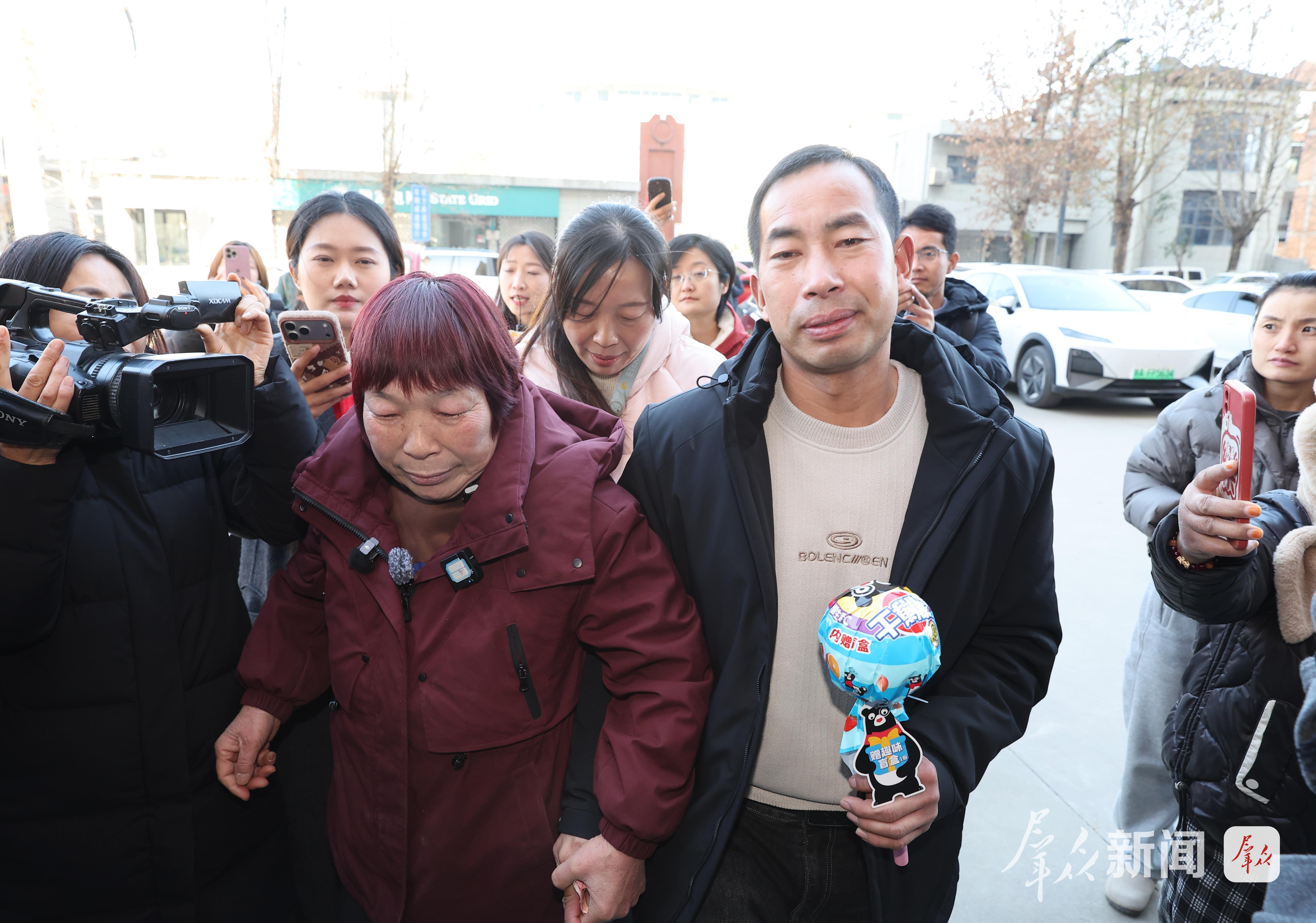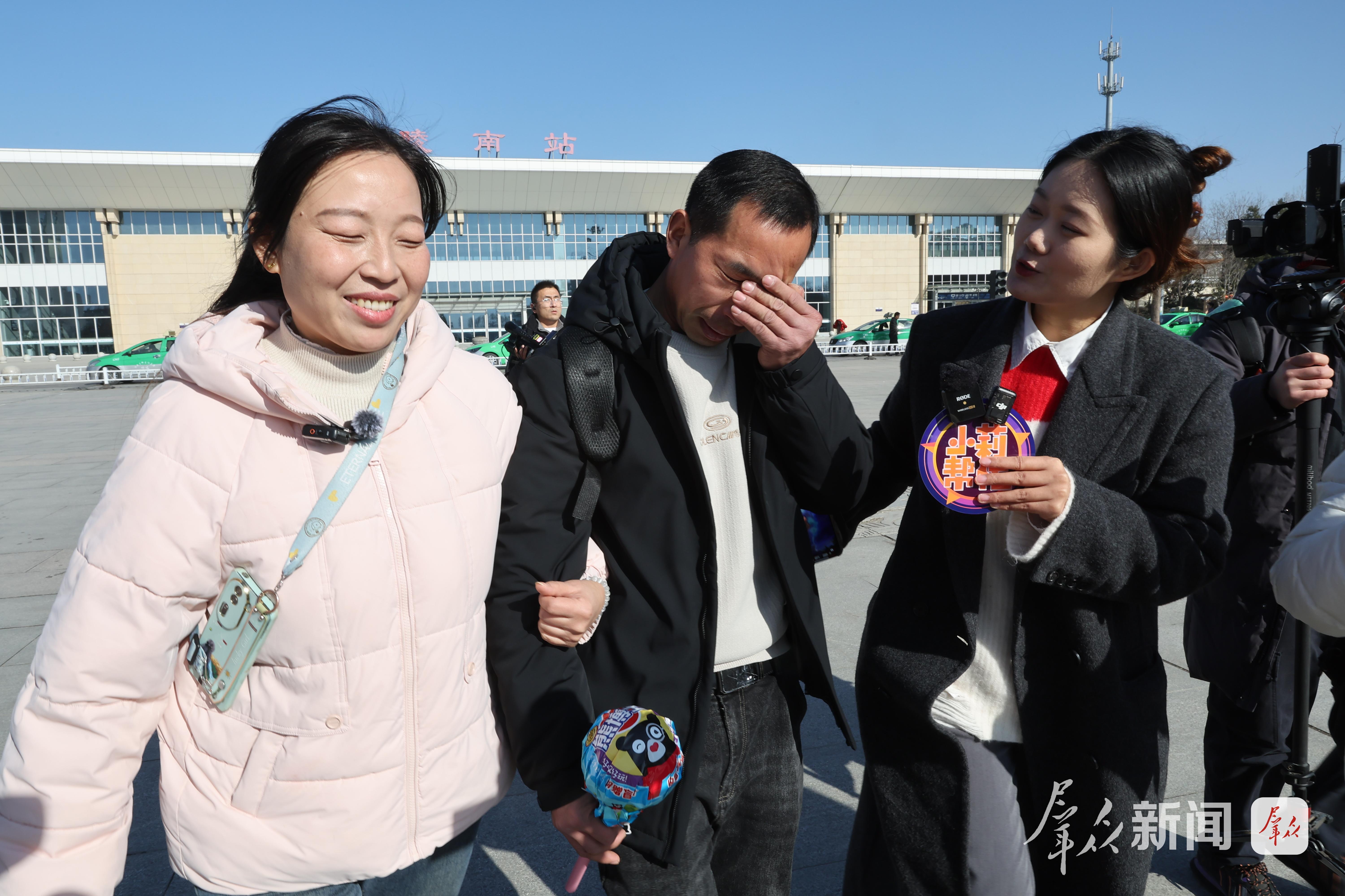 1月9日11时27分,杨凌南站出站口,人群来来往往。任向营和妻子刚走出闸机,等候多时的妹妹任雪娟迎了上去。她手里捧着一束鲜花,另一只手提着两个巨型棒棒糖——“花和糖送给我哥哥”,她说。