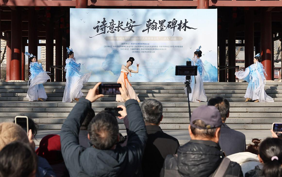 1月9日,“诗意长安 翰墨碑林”唐诗系列主题活动在西安市碑林区兴庆宫公园正式启动,这是唐诗文化“进景区、进社区、进校园”的首场活动。