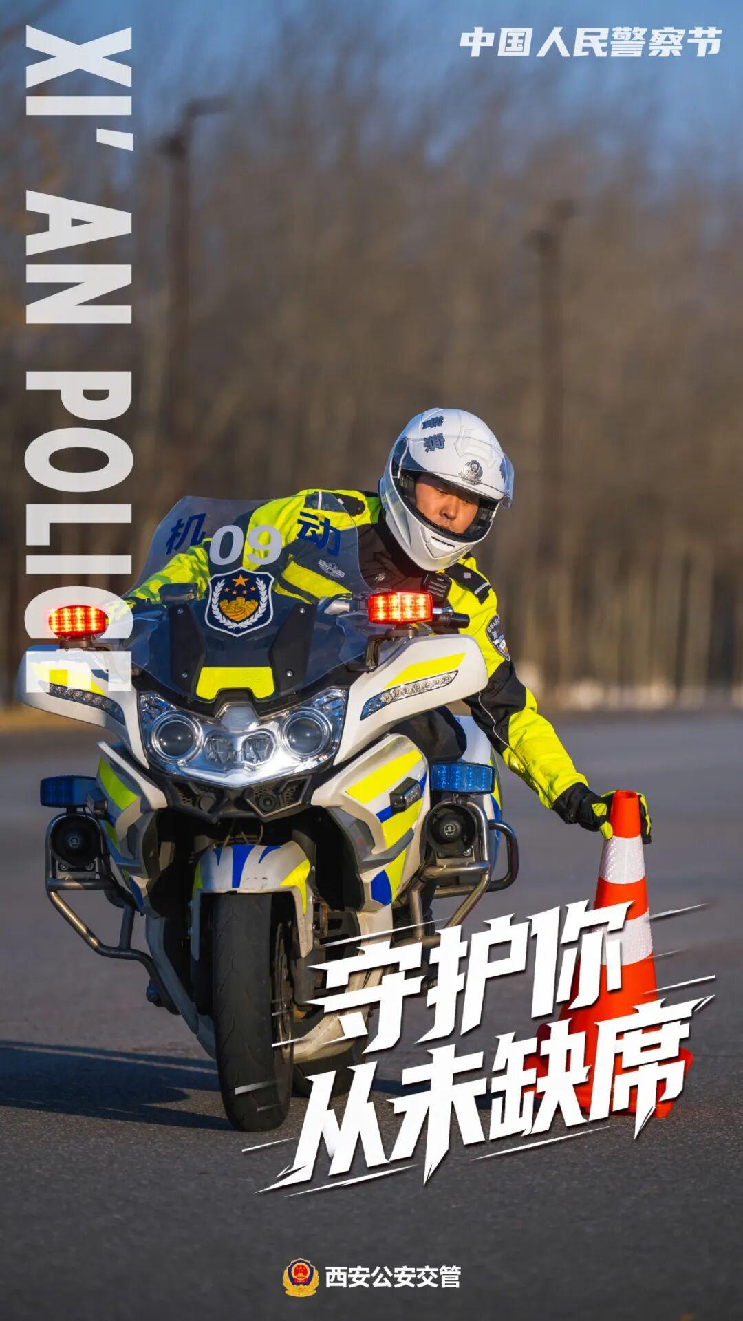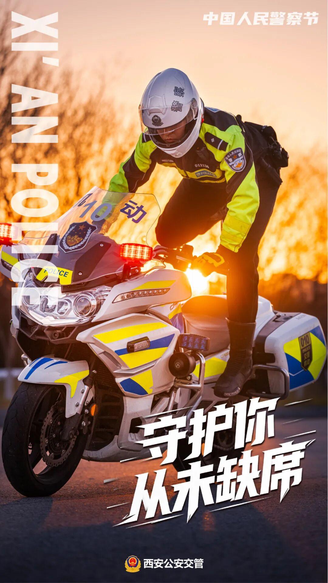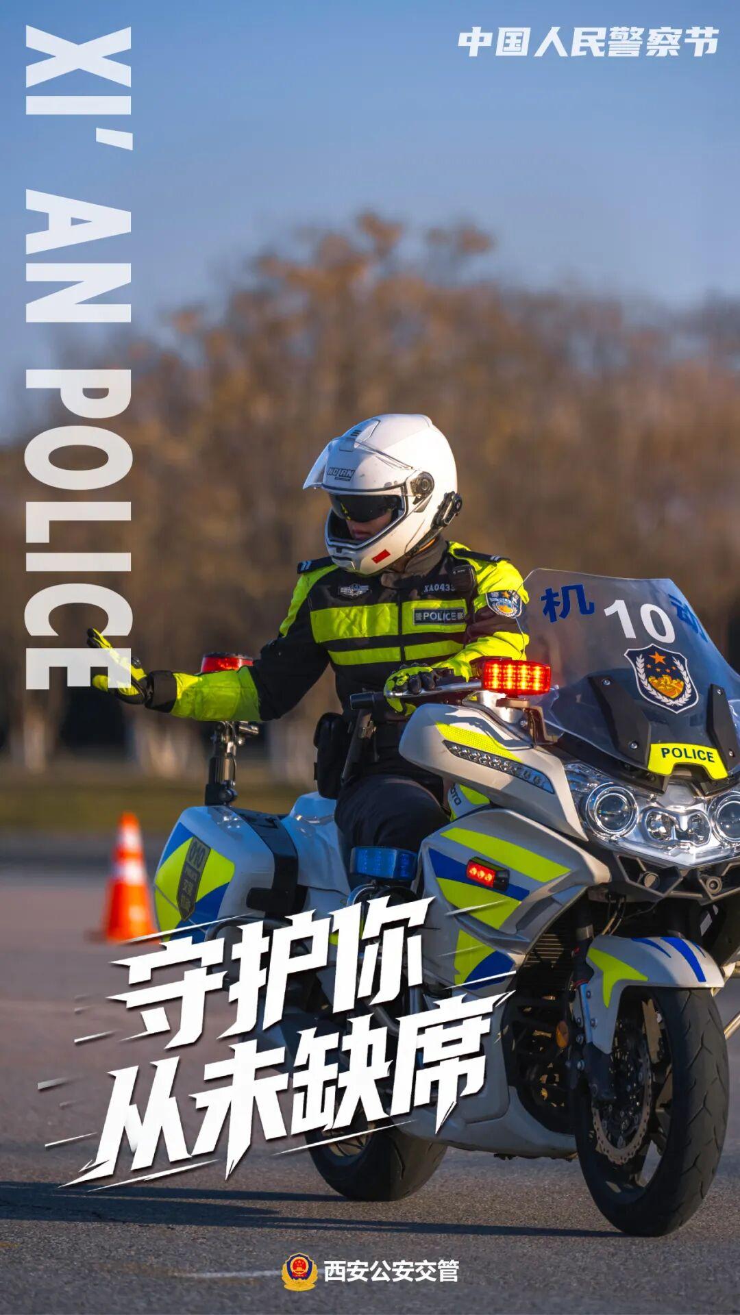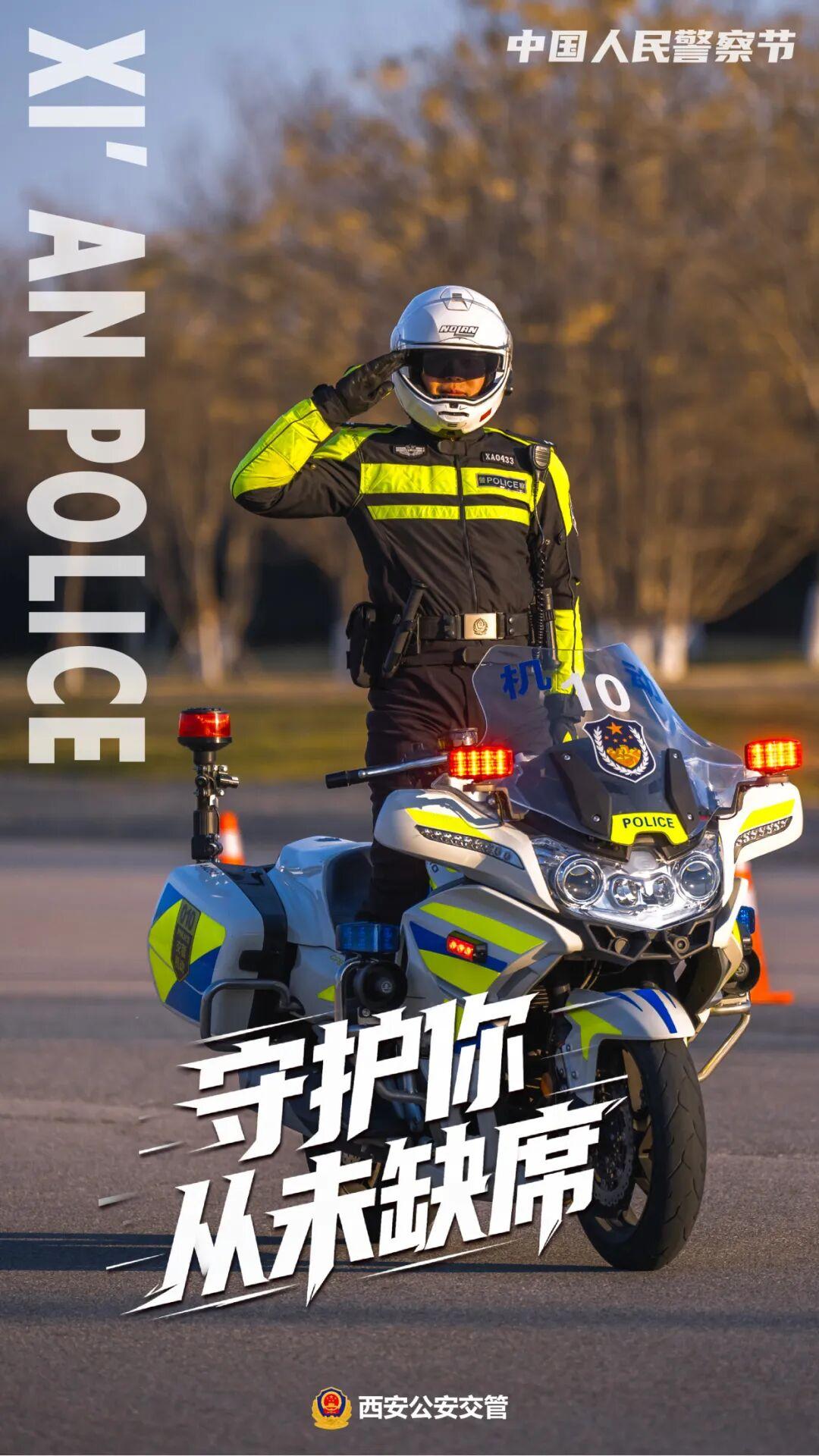 当引擎轰鸣划破晨雾 当哨声在路口规律响起 当荧光绿成为这座城市最安心的底色 ——这是西安公安交管的日常,却从不平凡 在第六个中国人民警察节来临之际 我们不想只展示坚毅的面孔 更想呈现那份人间温度 交警铁骑,不只是街头的一道风景线。在早高峰的车流里,他们是精准疏导的“手术刀”;在紧急送医的路上,他们是开辟生命通道的“先锋队”;在突发事故现场,他们是最快抵达的“急先锋”。 “快”是他们的标签,但快中有细——每一个手势都精准,每一条路线都熟记于心。 重机车身承载的是责任,荧光绿衣照亮的是平安。 无论严寒酷暑,总有人为你坚守路口。一个手势,一声哨响,一次标准转身——日复一日的重复,铸就了这座城市最坚实的平安防线。雪夜里,他们是屹立的路标;烈日下,他们是挺拔的绿荫;暴雨中,他们是指引的灯塔。 每一个平凡岗位上的不凡坚守,都是“人民公安为人民”的生动实践。 最默契的交流 往往在交班时的并肩而行里 我知你的付出 严肃与活泼 正是这些平凡的瞬间 让守护更有温度 路在脚下,是日复一日的丈量 平安在心,是年复一年的承诺
