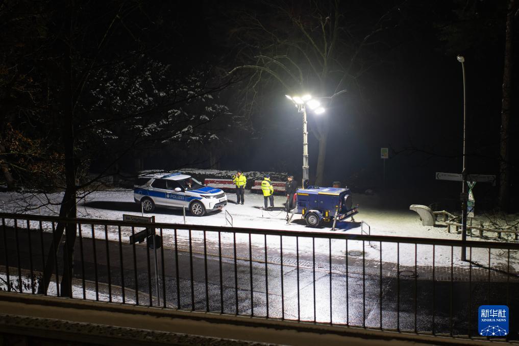 1月6日,警察在德国首都柏林西南部停电区域值守。
