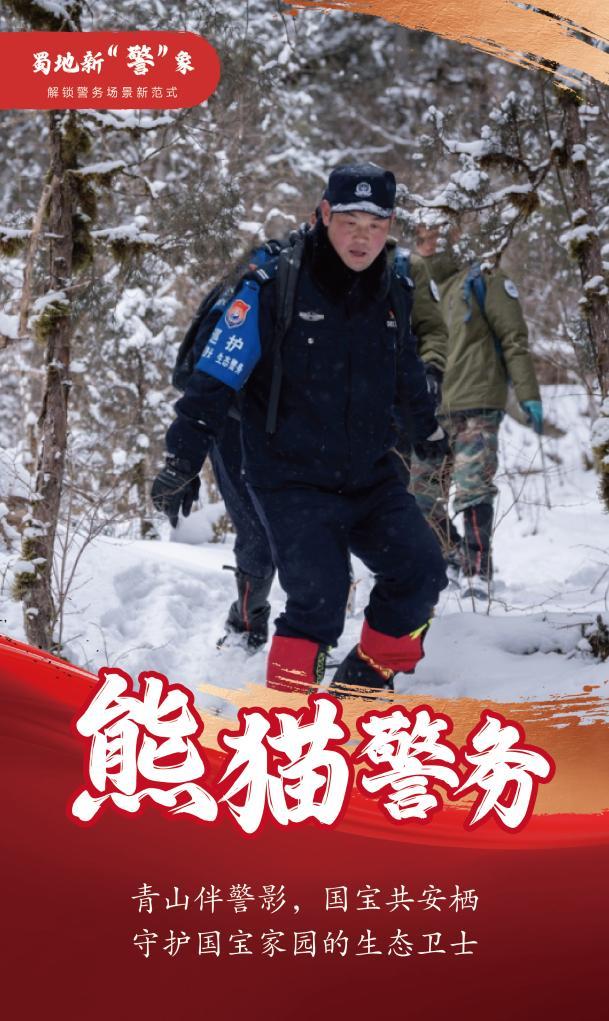 四川省平武县公安局白马派出所民警联合护林员在大熊猫国家公园王朗片区内进行巡逻(护)任务。
