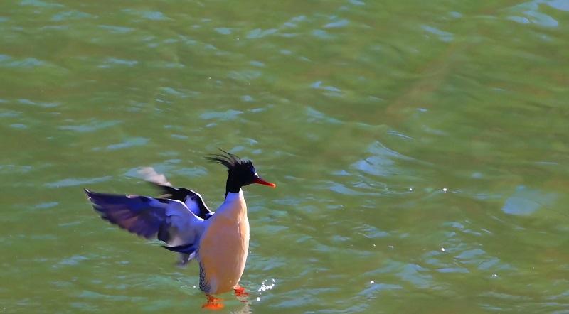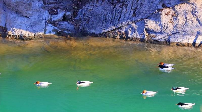 1月7日中午时分,在佛坪县椒溪河中段河面上,一群中华秋沙鸭正自由游弋、嬉戏,引得众多市民驻足观看。全球不足4000只的这一濒危鸟类突然出现,再次印证了佛坪县生态持续向好、生物多样性日趋向新、环境渐趋向优的新变化。