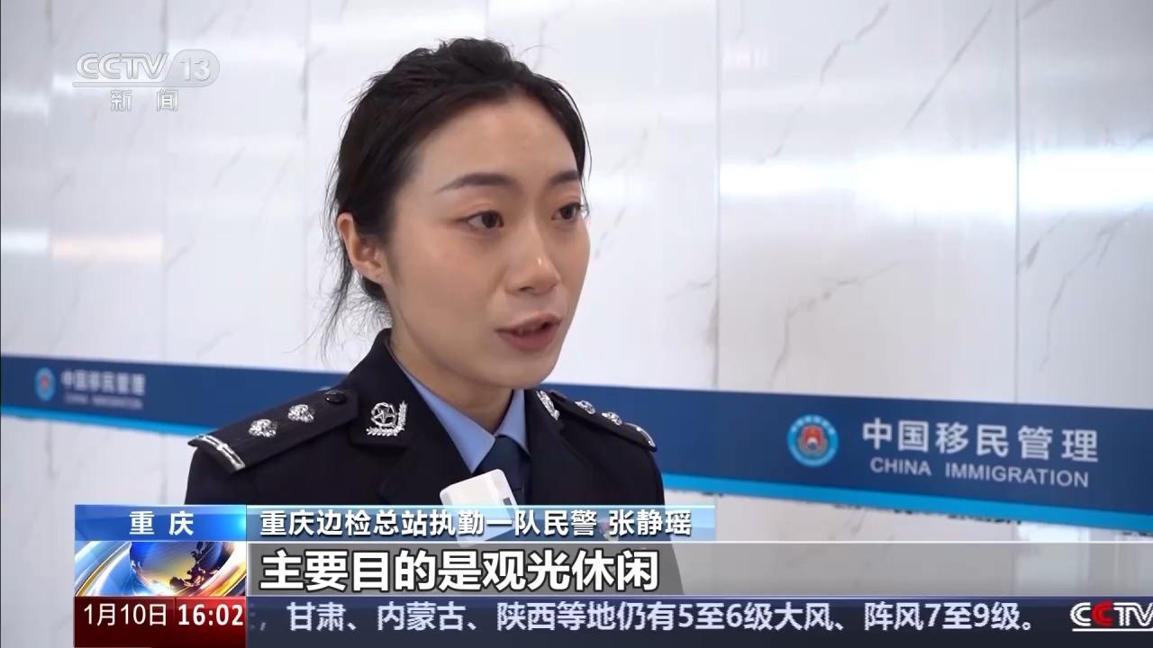 重庆边检总站执勤一队民警 张静瑶:入境外籍旅客主要目的是观光休闲、会议、商务、探亲访友等,出境目的主要以观光、就业、学习为主。