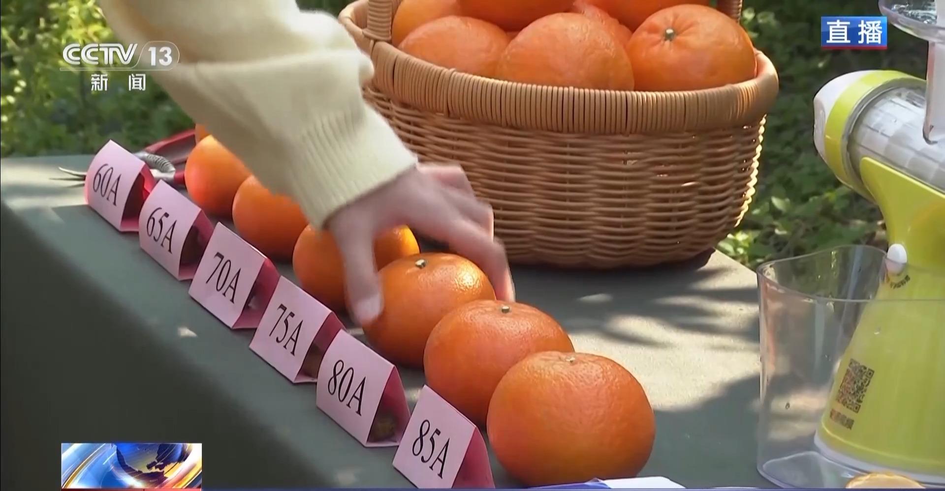 总台记者 杨雪:经过筛选,沃柑被精准分级。从60mm—85mm,每隔5mm为一个等级;再综合甜度、瑕疵度等分为A、B、C三级。在我面前就摆放着几颗不同级别的果实,其中,75—80mm的A级沃柑最为热销,据说是皮薄肉嫩,糖度高,而且汁水十足。
