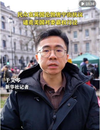 民众在英国伦敦唐宁街抗议 谴责美国对委霸权行径