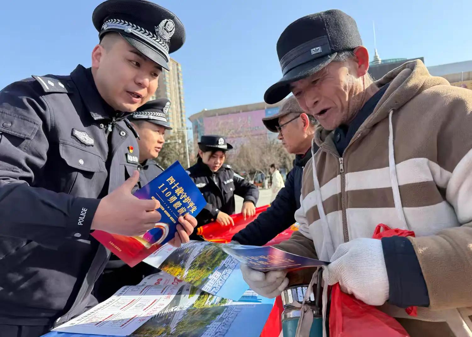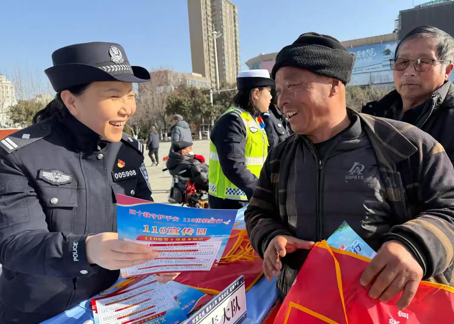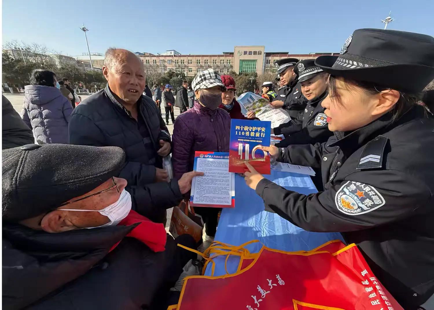 三秦都市报-三秦网讯(李世居 陈琳 崔林颖 记者 代泽均)1月10日,为庆祝第六个中国人民警察节暨110报警服务台诞生40周年,大荔县公安局民辅警走进广场街道,开展“四十载守护平安110勇毅前行”主题宣传活动,向群众普及110报警常识、反诈及安全防范知识,现场发放宣传资料和宣传品1000余份,受众超2000人次。