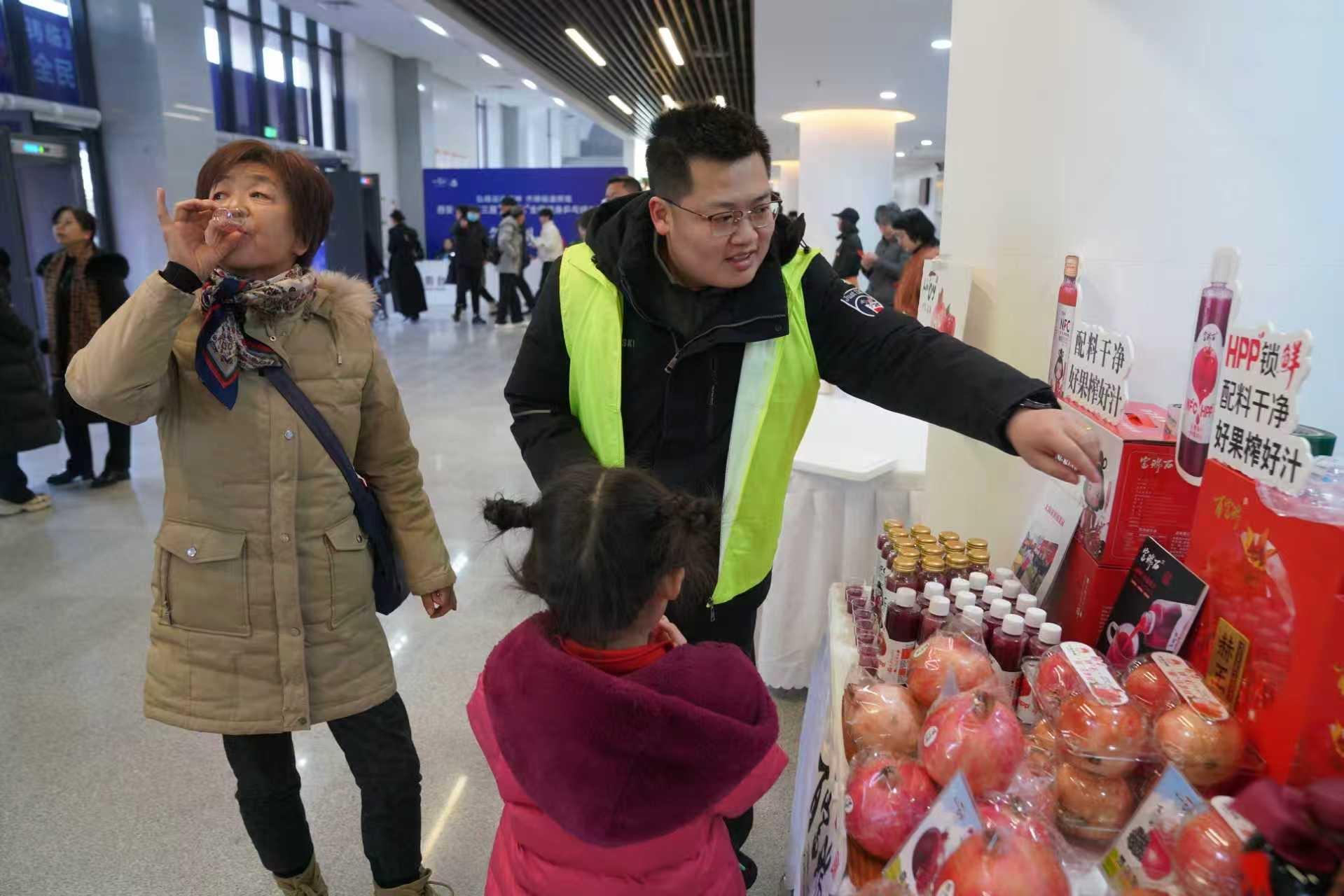 赛场内,选手们挥拍竞技,精彩不断;赛场外,“非物质文化遗产主题展区”吸引众多观众驻足,临潼剪纸、栎阳面花等非遗技艺展演以及临潼石榴及其深加工产品品鉴活动让赛事成为展示、推介临潼的窗口。