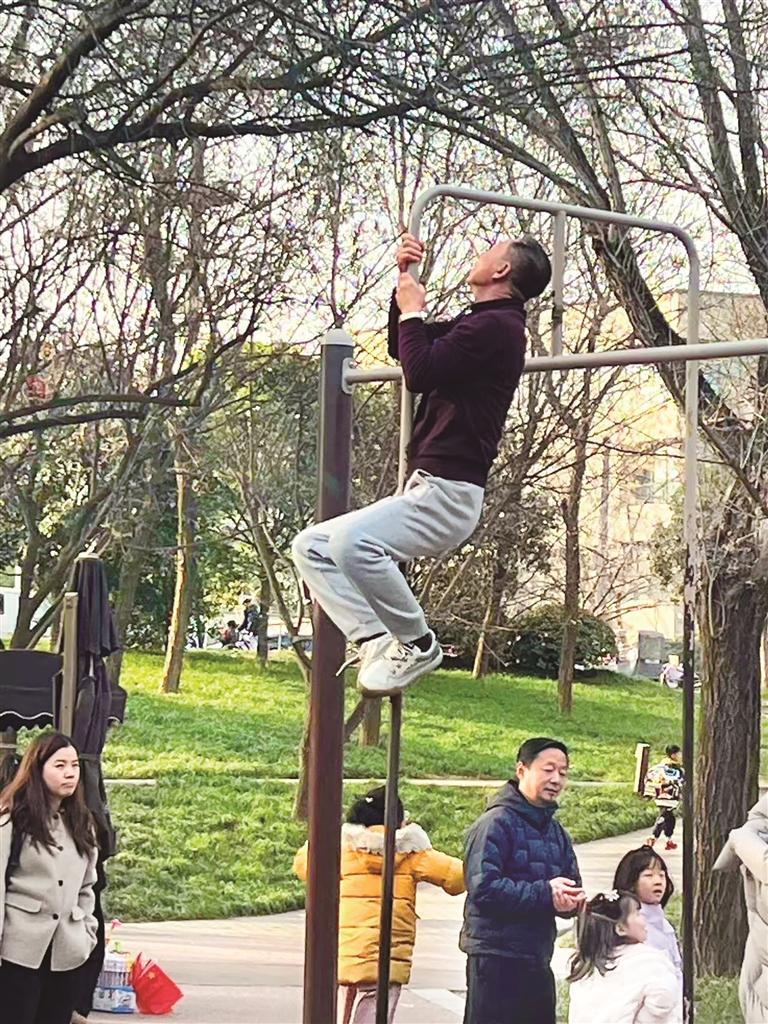 同日下午,兴庆宫公园的健身角同样热闹。72岁的张大爷正双手紧握双杠,身体悬空做着标准的臂屈伸,一套动作下来面不改色。旁边几位老人有的在单杠上做引体向上,有的尝试倒挂金钩,动作难度丝毫不输年轻人。张大爷擦了擦额头上的汗告诉记者,自己练双杠已经十多年了,每天雷打不动都得来,但冬季会特意控制时长。“天冷肌肉僵,不敢像夏天那样猛练,热身都得比平时多花10分钟。”