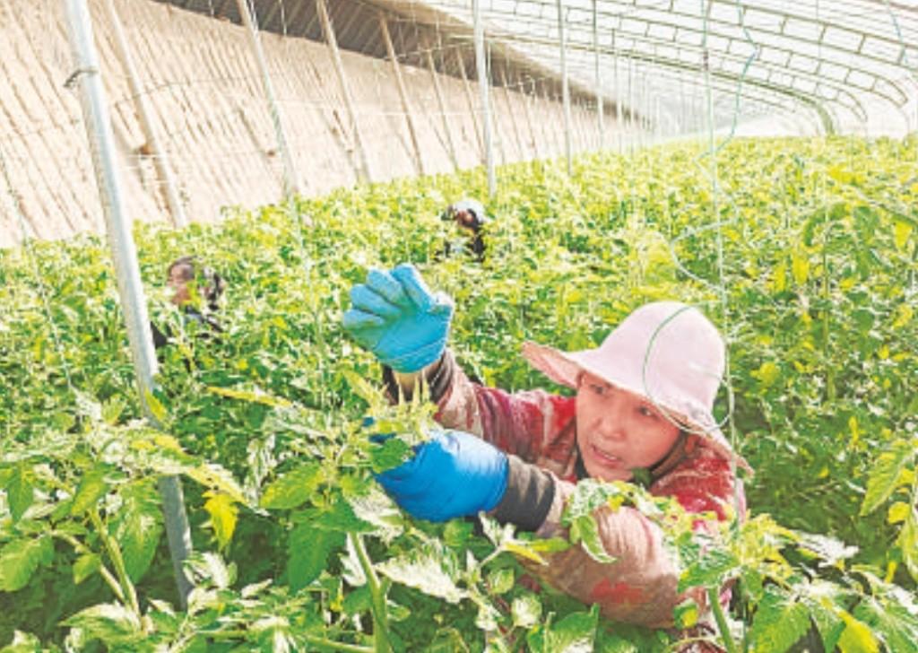 “给番茄苗打杈整枝,去除无用侧枝,既能避免植株徒长,又能优化田间通风环境,让果子充分吸收养分。”工作人员郭亚蓉一边忙活一边感慨,家门口的这份工作每月能赚3000多元,既能增收,又方便照顾家庭,日子过得踏实又有奔头。郭亚蓉家门口的稳定工作,得益于“泾阳番茄匠”这一劳务品牌,不仅为许多像她一样的群众提供了就业机会,还为当地群众提供了增收致富的渠道。
