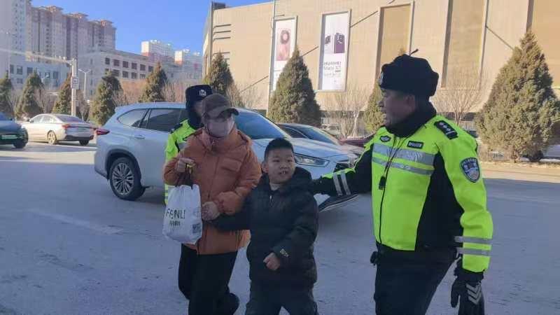 雨雪结冰天气期间,交警化身“安全摆渡人”,牵起学生的手护送其通过斑马线,同时叮嘱注意安全,用暖心服务融化冬日寒意。