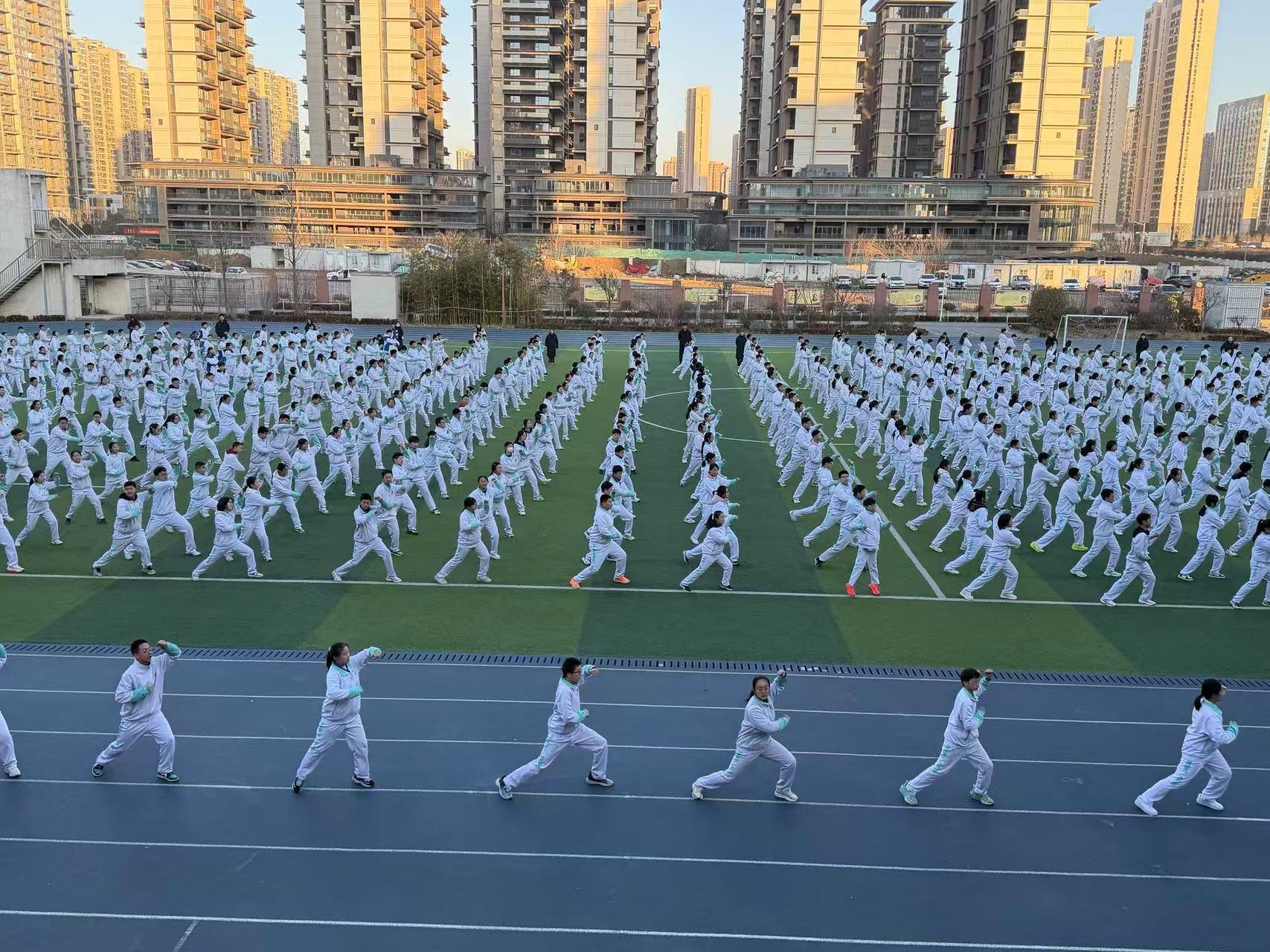 高新区第四完全中学党支部书记、校长董彩凤坦言,初期最大的压力来自课表编排和场地统筹。为此,学校创新采用“数英学科单双周轮排”法,为体育课开辟出稳定的专属课时。同时,精心编织了一张覆盖全天的运动网络:“清晨红拳操练+上午大课间跑操+下午体育课与特色活动+课后社团”,确保运动不断线。该校综合三组教研组长陈栋老师介绍,学校根据不同学段特点精准设计:初一重兴趣激发,大课间活动丰富有趣;初二重技能竞赛,班际联赛如火如荼;初三重中考体能,训练科学高效。