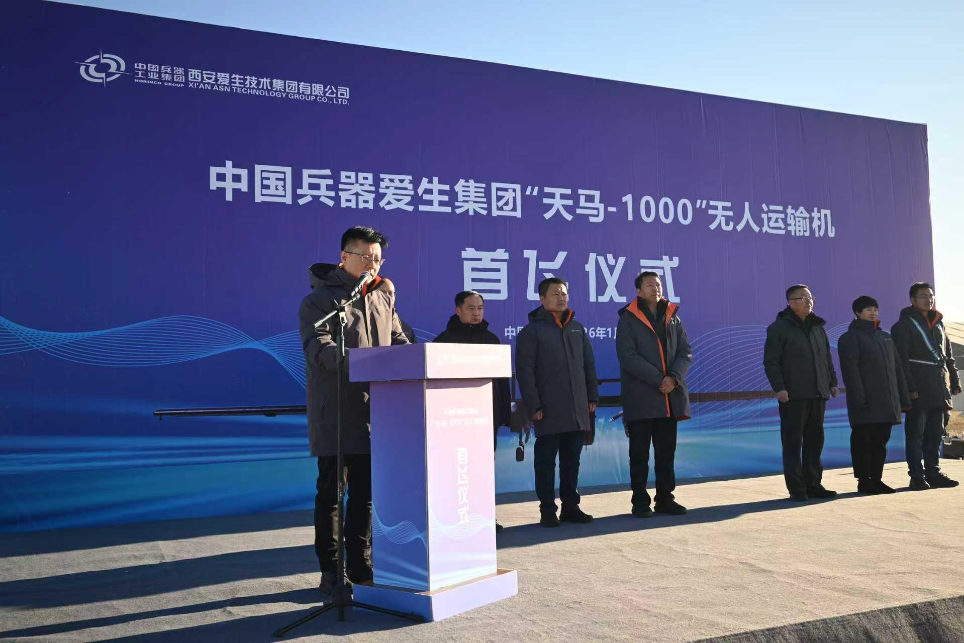 三秦都市报-三秦网讯(白凌燕 史扬 刘瑞 记者 赵丽莉)1月11日,靖边爱生无人机试验测试中心上空,由中国兵器工业集团西安爱生技术集团有限公司完全自主研发的“天马-1000”无人运输机直冲云霄,顺利完成首次飞行试验。各项飞行数据表现优异,标志着这款国内首款集“高原复杂地形适配、超短距起降、货运/空投双模快速切换”于一体的中空低成本运输平台,成功迈出产业化关键一步。作为试验组织保障单位,靖边爱生无人机试验测试中心以一流的技术与保障能力,为此次首飞保驾护航,再次彰显了专业无人机公共服务平台的硬核实力。