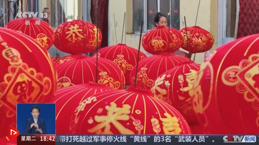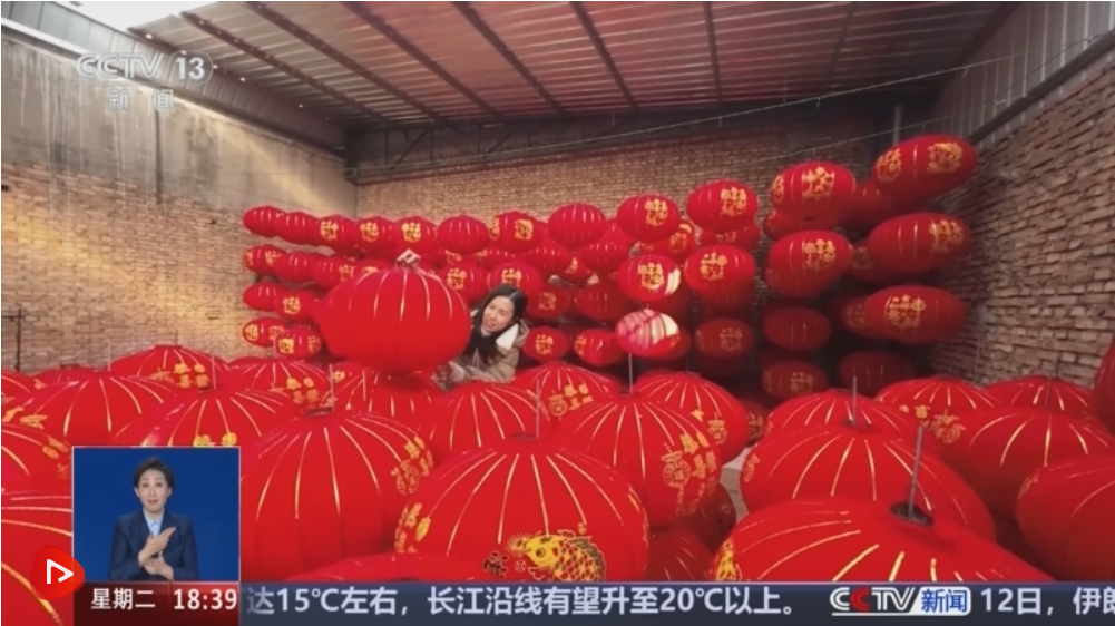 某宫灯厂负责人 苏明阳:现在一天直播4小时—5小时,到年底我们一天开播将近16个小时。在线上卖,占到我们整个工厂销售额的将近三分之一。