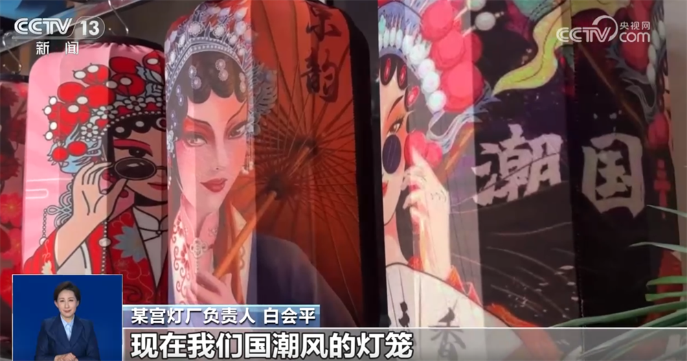 某宫灯厂负责人 白会平:通过跟大专院校合作,研发新的产品,每年都得有一个新的突破。现在我们国潮风的灯笼特别受年轻消费群体的喜欢。原来我们是单一的几个品种,现在发展到18个大的系列、300多个品种,而且根据客户的要求还可以量身定做。