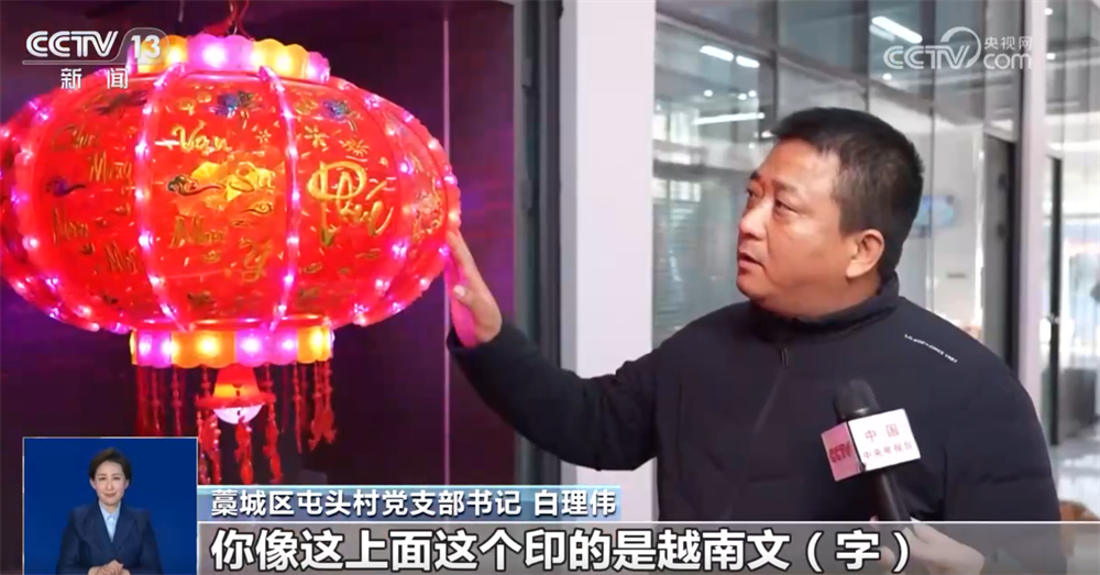 藁城区屯头村党支部书记 白理伟:通过宫灯博览会,对接了市场、增加了客户,你像这个上面印的是越南文字,一些吉祥话,这是近两年新开发的产品。