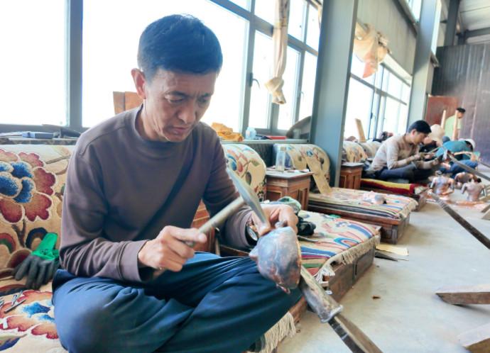 徒弟洛桑群培是传承成果的见证者。“我在孜东铜器工作有二十年了,在这期间一方面是学到了技术,另一方面实现了家门口就业。”