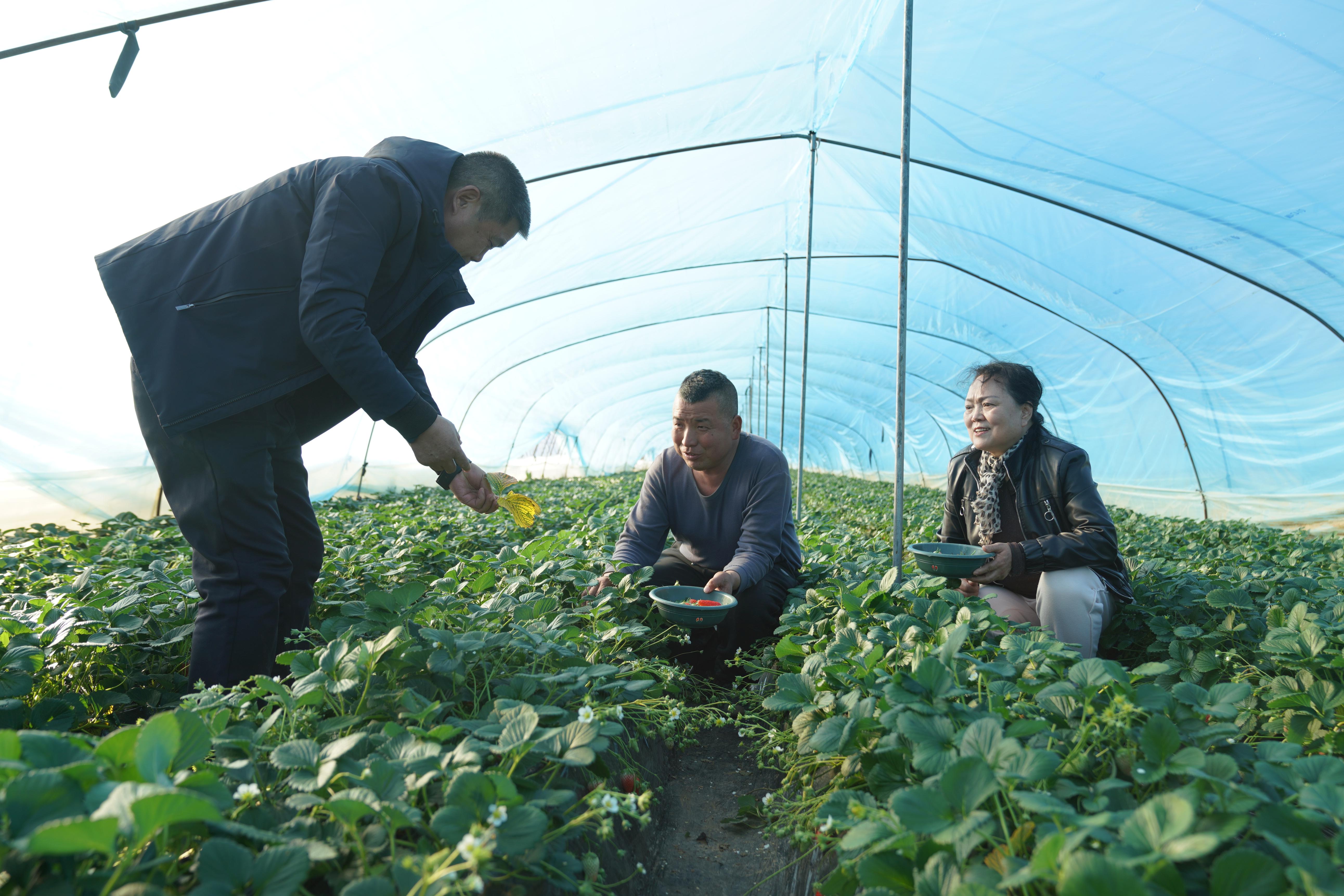 三秦都市报-三秦网讯(记者 文晨 通讯员 王三合)冬日暖阳洒进草莓大棚,绿叶白花间点缀着鲜红的果实。1月12日,在西安市临潼区斜口街道洪庆村,驻村干部李晓芳正俯身和村民一起清理草莓枯叶,手把手讲解草莓种植管护要领。“及时摘除匍匐茎和老叶,果子才长得好!”李晓芳一边向村民示范一边说。
