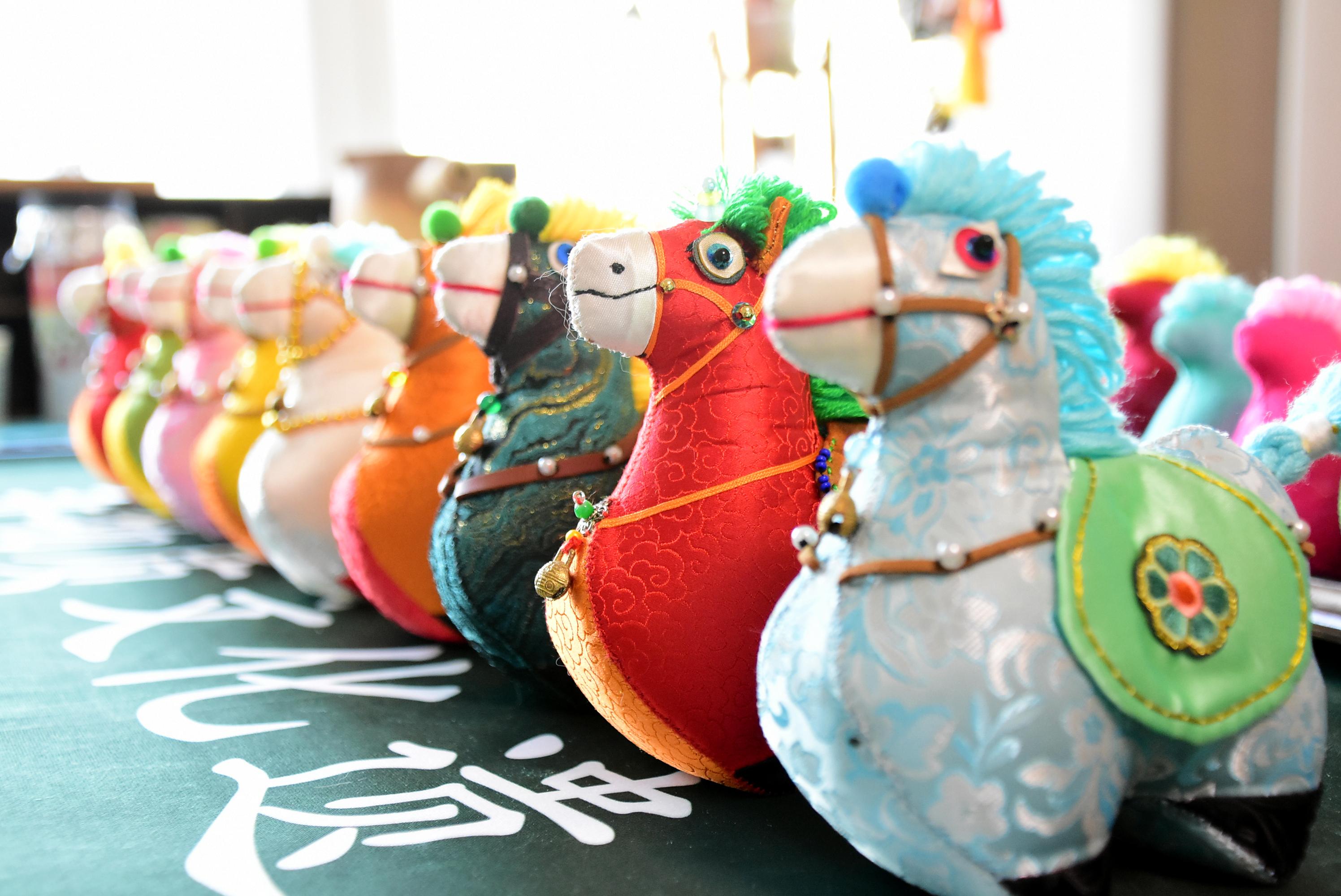 “马象征着昂扬向上,新年里大家都盼着顺遂如意,我就想把这些美好期许都织进针脚里。”为此,她特意设计了“唐富贵”“迎春马”“马上有福”等不同款式的小马,每一款都藏着专属的祝福。为了让作品更讨喜,她反复琢磨针法,选用柔软亲肤的丝棉,用加减针技巧勾勒出小马圆润的身形, 从糊、压到绣、缝,用传统技艺编织新年祝福。