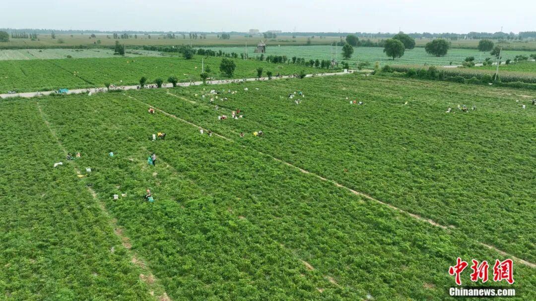 冀南平原上,连片的辣椒田如红色海洋翻涌——细长的羊角椒紧紧扒着枝头荡来荡去,油亮的皮肤晒得通红。