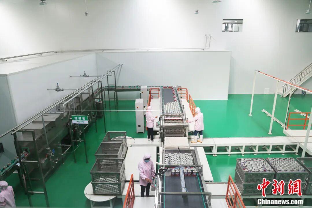 图为鸡泽县辣椒加工企业剁椒罐装生产线。 中共鸡泽县委宣传部供图