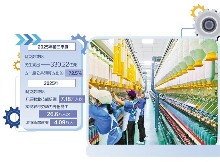 办好民生实事,需加大投入力度。近年来,阿克苏地区坚持“民生优先”预算编制导向,大力压减一般性、非刚性支出,将节省的资金集中投向民生领域,以投入“硬支撑”保障大民生。数据显示,2025年前三季度,该地区民生支出330.22亿元,占一般公共预算支出的72.5%,一笔笔“真金白银”投向医疗、社保等民生领域。