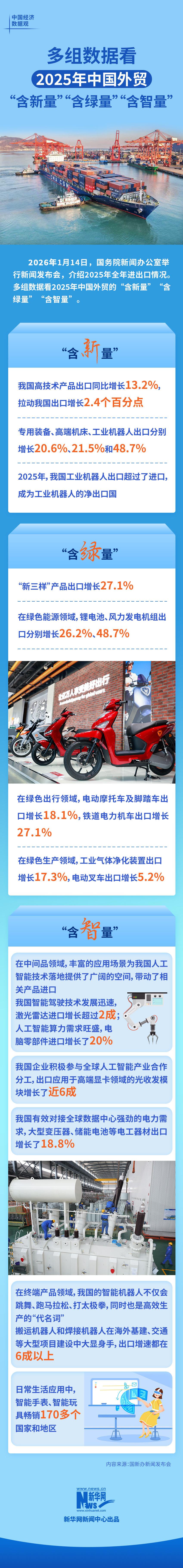 中国经济数据观丨多组数据看2025年中国外贸“含新量”“含绿量”“含智量”