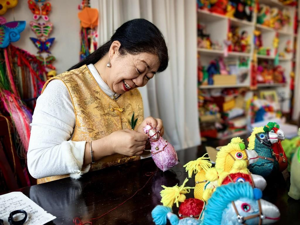 “既可观赏,又实用,年味十足!”邻居何女士连连称赞。“你这缝线,针脚真好看!”另一位居民拿起一只“迎春马”,爱不释手。“马象征着昂扬向上,每逢新年,大家都盼着顺遂如意。”王海燕笑着说,“顺祝大家马到成功,好运连连!”为此,她特意设计了“马富贵”“‘马’上有福”等多个款式,每一只都缝进了对生活的美好期许。
