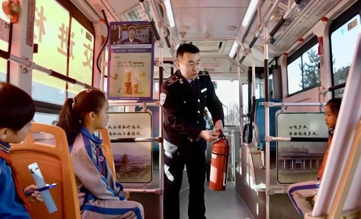 公交五公司高星驾驶员田治虎从驾驶员视角出发,将公交车厢变为移动讲堂。“孩子们,你们知道公交车的盲区在哪里吗?”田治虎通过面对面问答引导大家思考,他将车辆盲区、安全候车等专业知识转化为孩子们能听懂的语言,枯燥说教被生动互动取代。在“应急设施体验”环节,他手把手指导学生操作安全锤、逃生天窗、灭火器等设备,让知识从“听得见”变为“看得见、摸得着、会操作”。