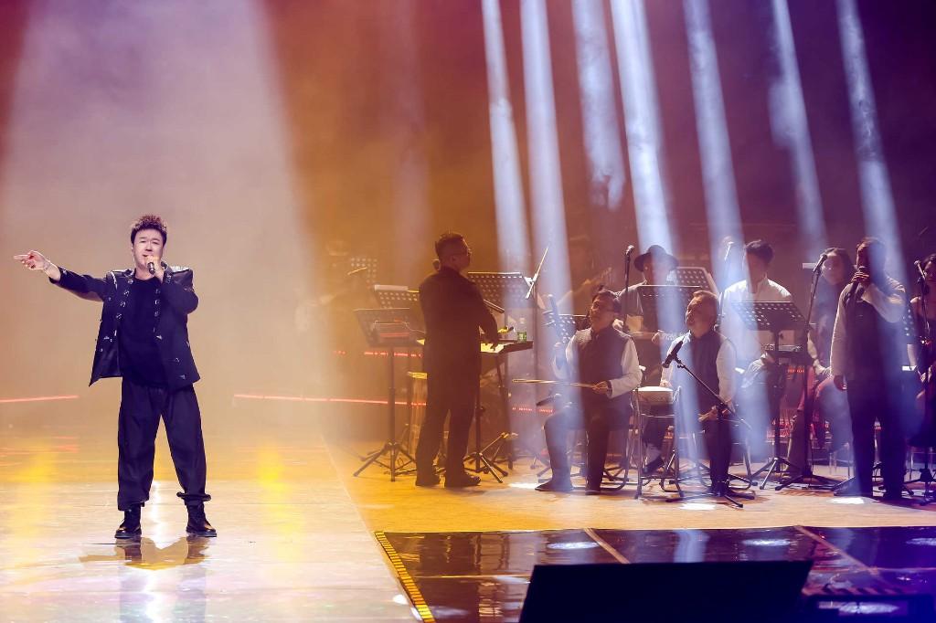 展演以篇章式结构铺展音乐画卷,第一篇章“山河颂歌”率先登场,以三秦大地壮阔山河为底色,用歌声勾勒陕西的自然与人文之美——《天下黄河》唱出“黄河之水天上来”的奔腾磅礴气势,《棣花之恋》描绘了地处秦岭腹地的商洛棣花古镇的浪漫景致;《大雪》用青春的气息传递出的长安大雪天的风情,《可想你哩》则饱含对陕北故土的深情眷恋;《你的美丽》展现安康的灵秀风光,《浪咸阳》诉说咸阳的历史韵味,《汉水人家》则将汉水流域的风土人情和陕南民歌的意境娓娓道来,每首歌都尽显山河的雄奇与温婉。