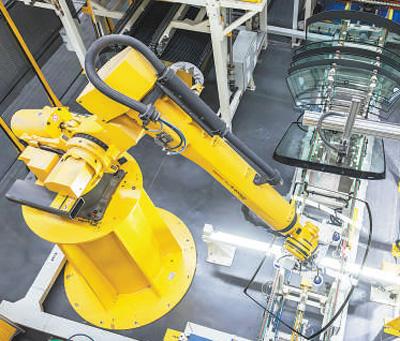 福清福耀绿色智慧工厂汽车玻璃生产线一角。