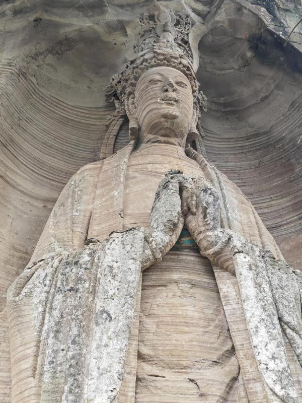 这里的文物数量众多,全县境内现存唐宋摩崖石刻造像10万余尊,石窟摩崖经文近40万字,石窟类全国重点文物保护单位8个;这些造像技艺绝伦,盛唐之丰腴、两宋之精细、多元融合之美集中呈现;这些造像精品迭出,“最美观音造像”紫竹观音、世界最长唐代左侧卧佛无不令人啧啧称叹。