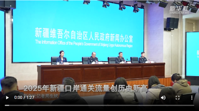 2025年新疆口岸呈现“大进大出”的繁荣景象,全年累计查验出入境人员443.5万人次、交通运输工具172.4万辆(列、架)次,均创历史新高,同比分别增长36.4%和26.6%。