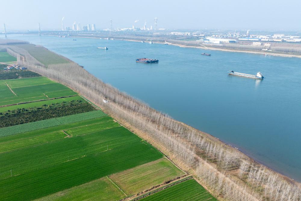 2026年1月6日在湖北省荆州市公安县杨家厂镇长江村拍摄的长江荆州段(无人机照片)。新华社记者 杜子璇 摄