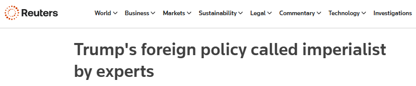 路透社(Reuters)网站近日发表署名文章,批评美国政府外交政策带有的鲜明的帝国主义色彩。