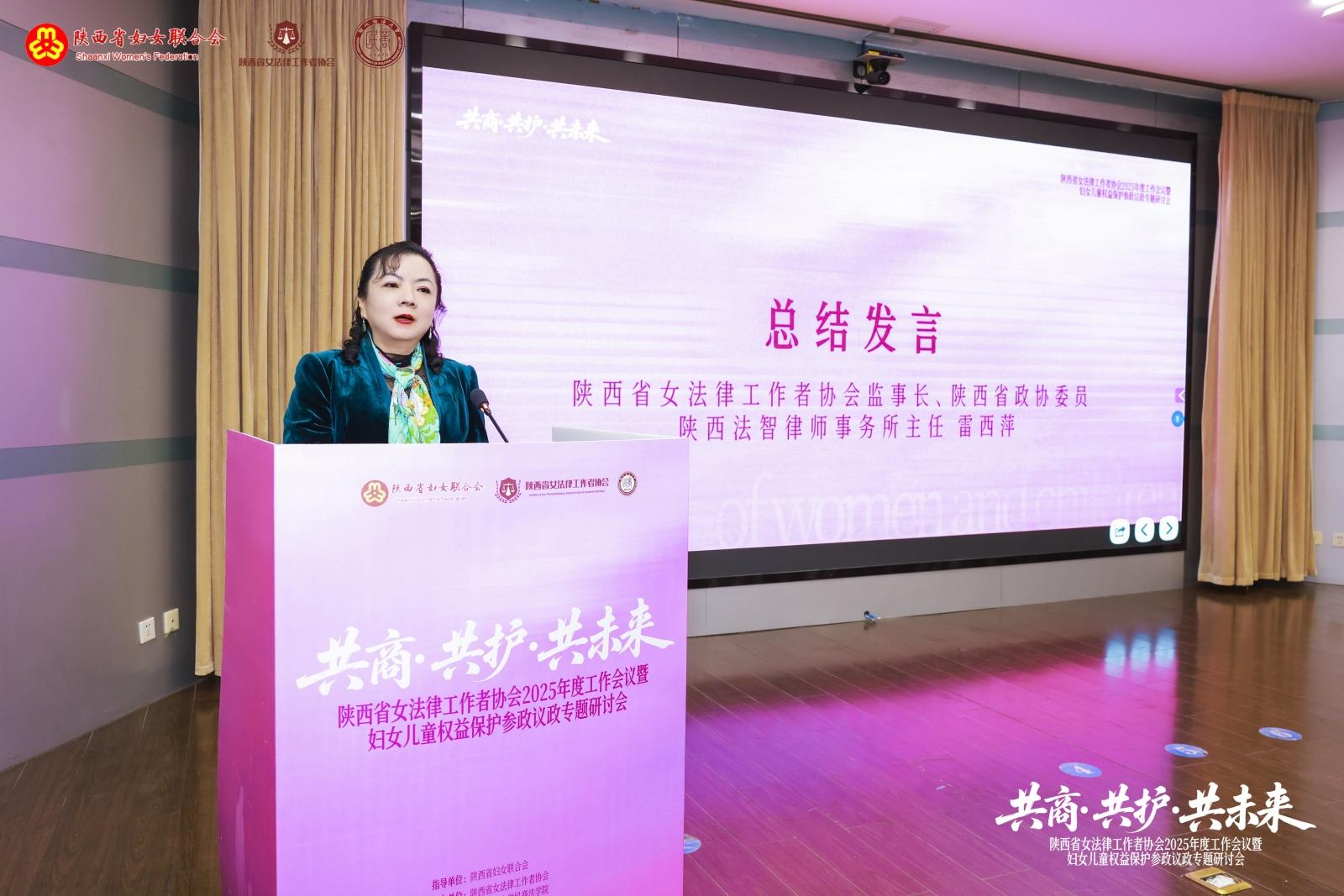 本次研讨会旨在以参政议政为路径,促进相关法律完善、政策修订与制度优化,为进一步守护妇女儿童权益、共建共享美好未来凝聚共识与力量。未来,陕西省女法律工作者协会将持续凝聚社会各界力量,推动形成“专业引领、多方协同、精准发力”的妇女儿童权益保护工作格局,为筑牢妇女儿童权益保护坚固防线、贡献参政议政巾帼智慧。
