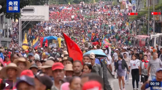 当地居民 路易莎·莫拉莱斯:我们此刻站在街头就是要告诉特朗普,你触碰了我们国家神圣不可侵犯的尊严。在亲眼看到总统归来之前,我们绝不会从街头撤离,我们要让总统回到自己的国家。