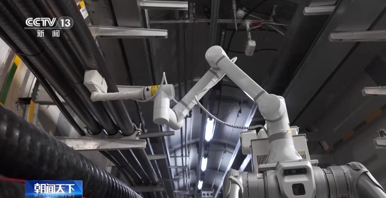 总台央视记者 张艺瑾:在地下19米的电力管廊,机器狗背上长出的机械臂可以伸到电缆表面,检测出是否有放电等情况发生,大大减少电力工人在高危环境里的作业时间。
