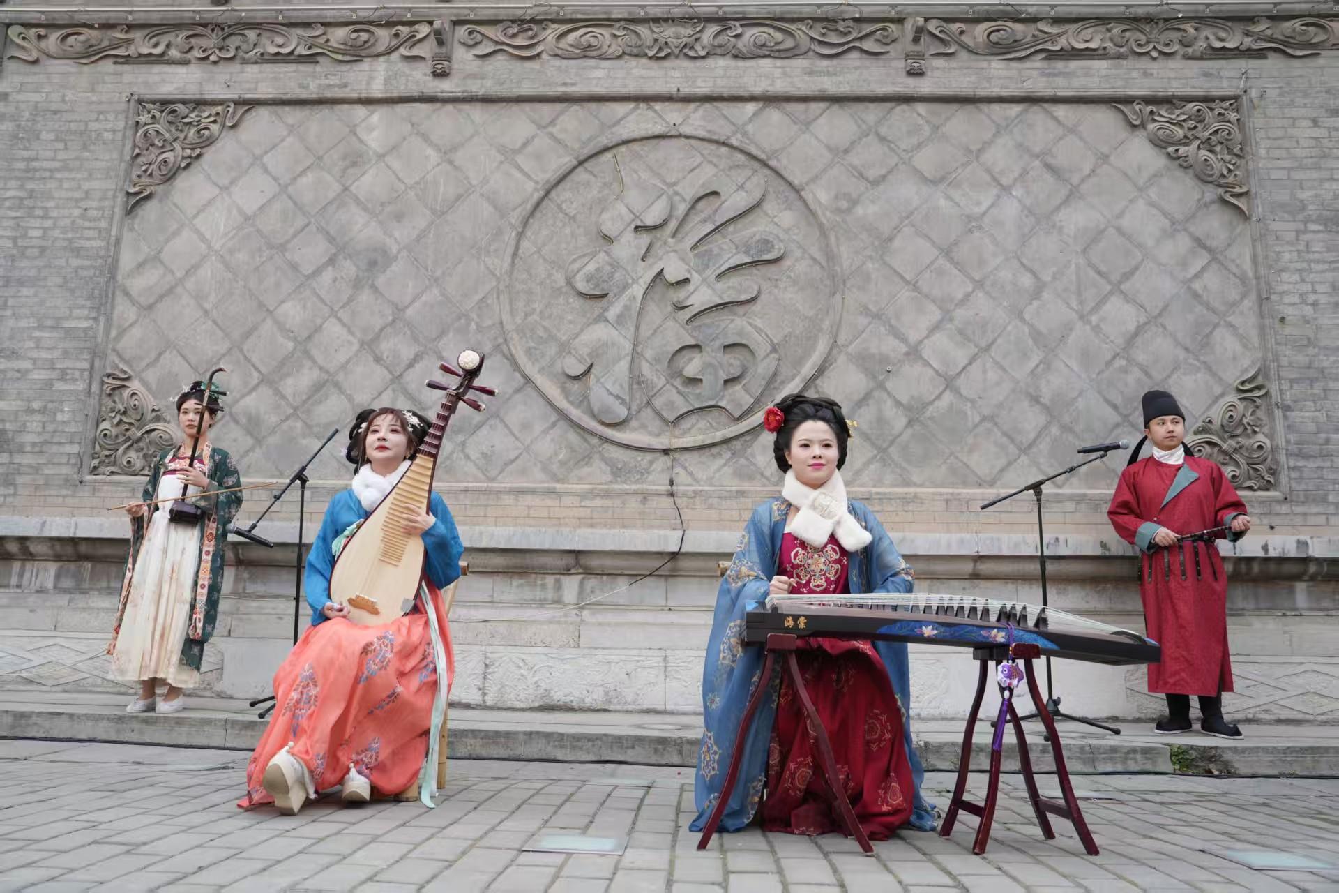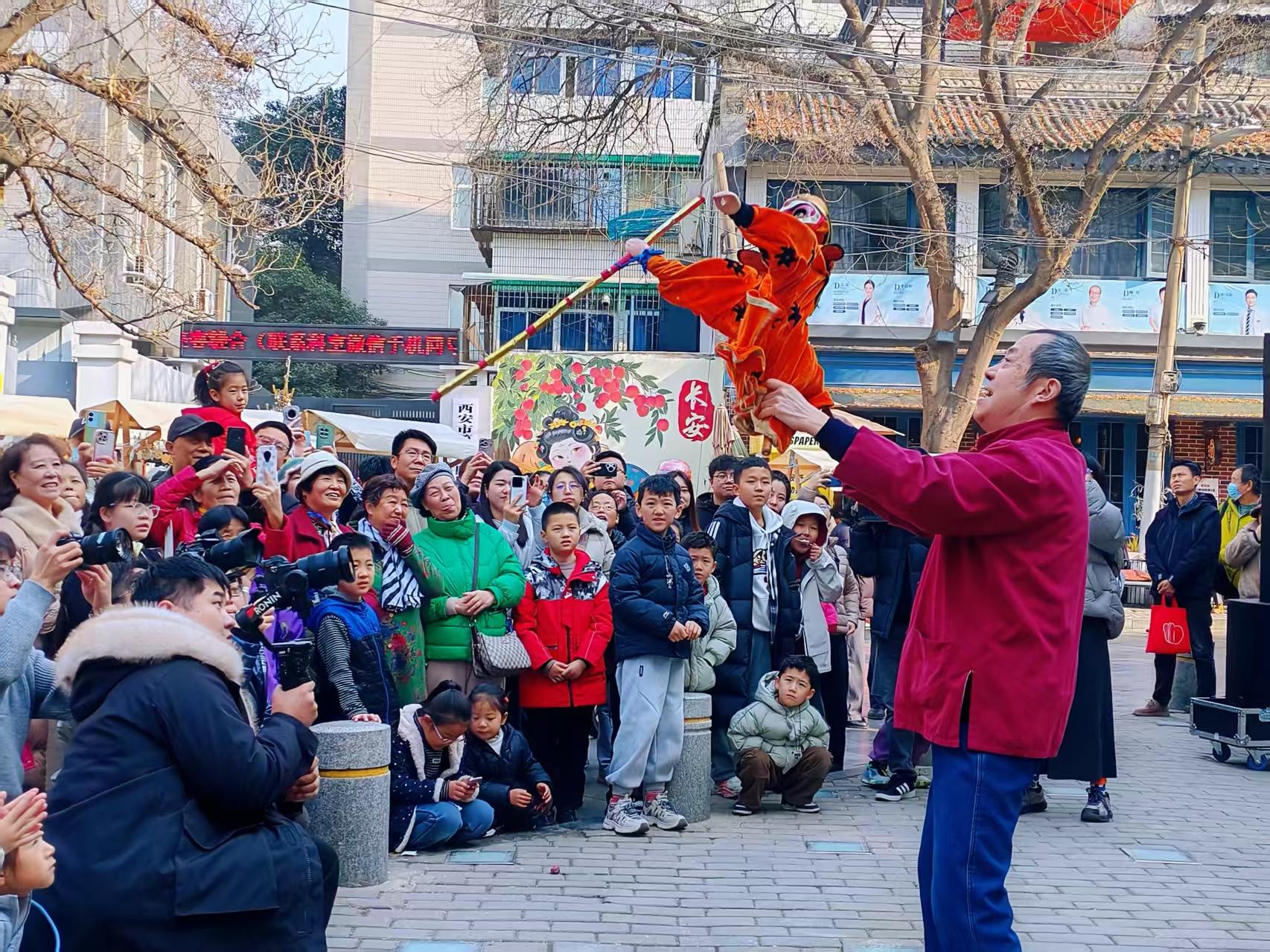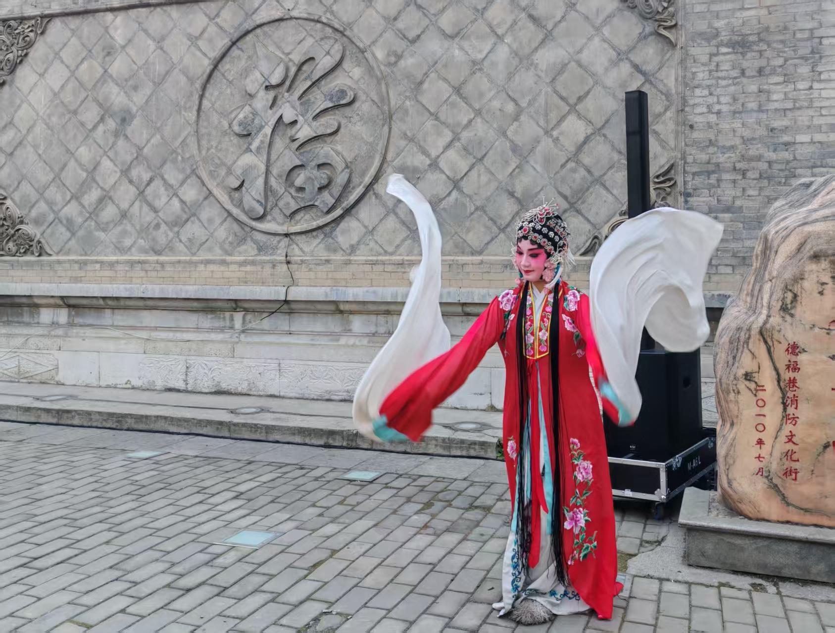 活动现场,精湛的秦腔戏曲技艺展示、灵动的杖头木偶戏、悠扬的国风鼓乐等节目,以快闪形式在街区巷道轮番上演。演员们的精彩表演让市民游客驻足流连,大人孩童纷纷举起手机记录,阵阵掌声与喝彩声萦绕在青砖黛瓦间。这场流动的非遗展演,打破了传统展示的边界,让古老非遗成为触手可及的街头风景,让历史街区浸润在浓厚的文化气息中。