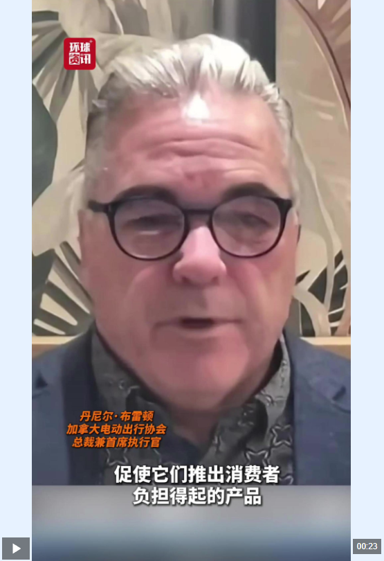 对此,加拿大电动汽车协会总裁兼首席执行官丹尼尔·布雷顿在接受媒体采访时表示,让中国产电动汽车在加拿大市场展现实力,有助于推动良性竞争。
