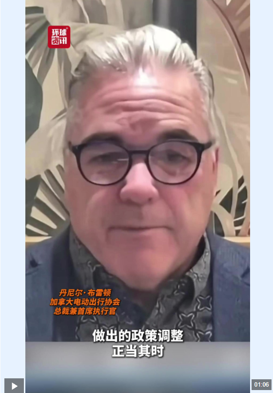 “几天前,美国总统公开说不希望任何在加拿大制造的汽车在美国销售,这意味着他在对整个加拿大汽车业发出威胁。所以我认为卡尼总理做出的政策调整正当其时,因为我们必须找到新的合作伙伴,无论是来自中国、日本、韩国还是欧洲。60年来基于汽车行业的协定,加拿大一直依赖美国,但现在情况正在快速改变。所以我认为,即将进入加拿大市场的4.9万辆中国产电动汽车,是朝着正确方向迈出的第一步。