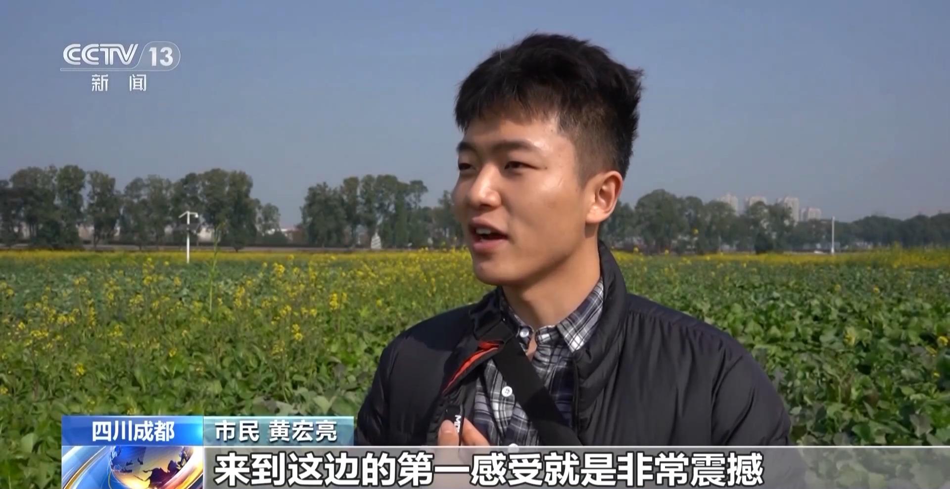 市民 黄宏亮:来到这边的第一感受就是非常震撼。很多油菜花田,地铁从旁边驶过也非常惬意。虽然现在这些花没有完全开放,我想等到我们真正来拍的那天,会非常震撼非常好看。