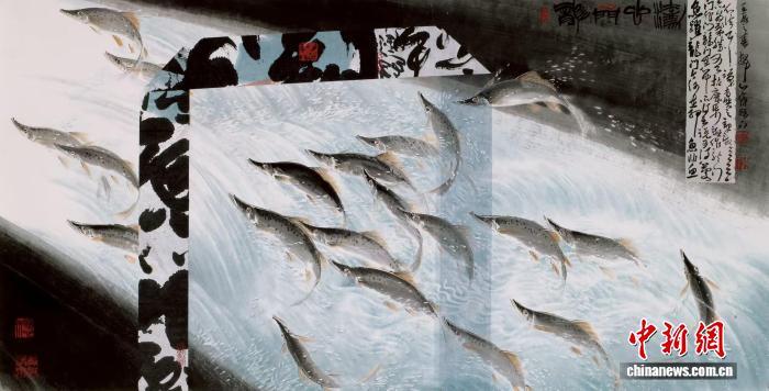 图为林章湖画作《鱼跃龙门》。 (受访者供图)